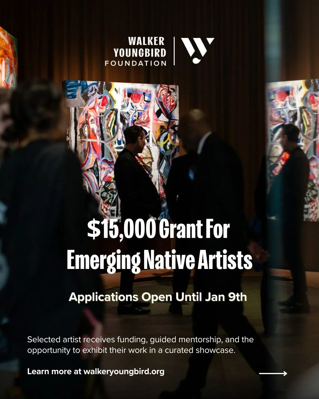The Walker Youngbird Foundation supports early and emerging Native artists through direct funding, mentorship, and institutional partnerships. Founded in 2024, the foundation champions Native creativity across all media with an eye toward long-term cultural impact.