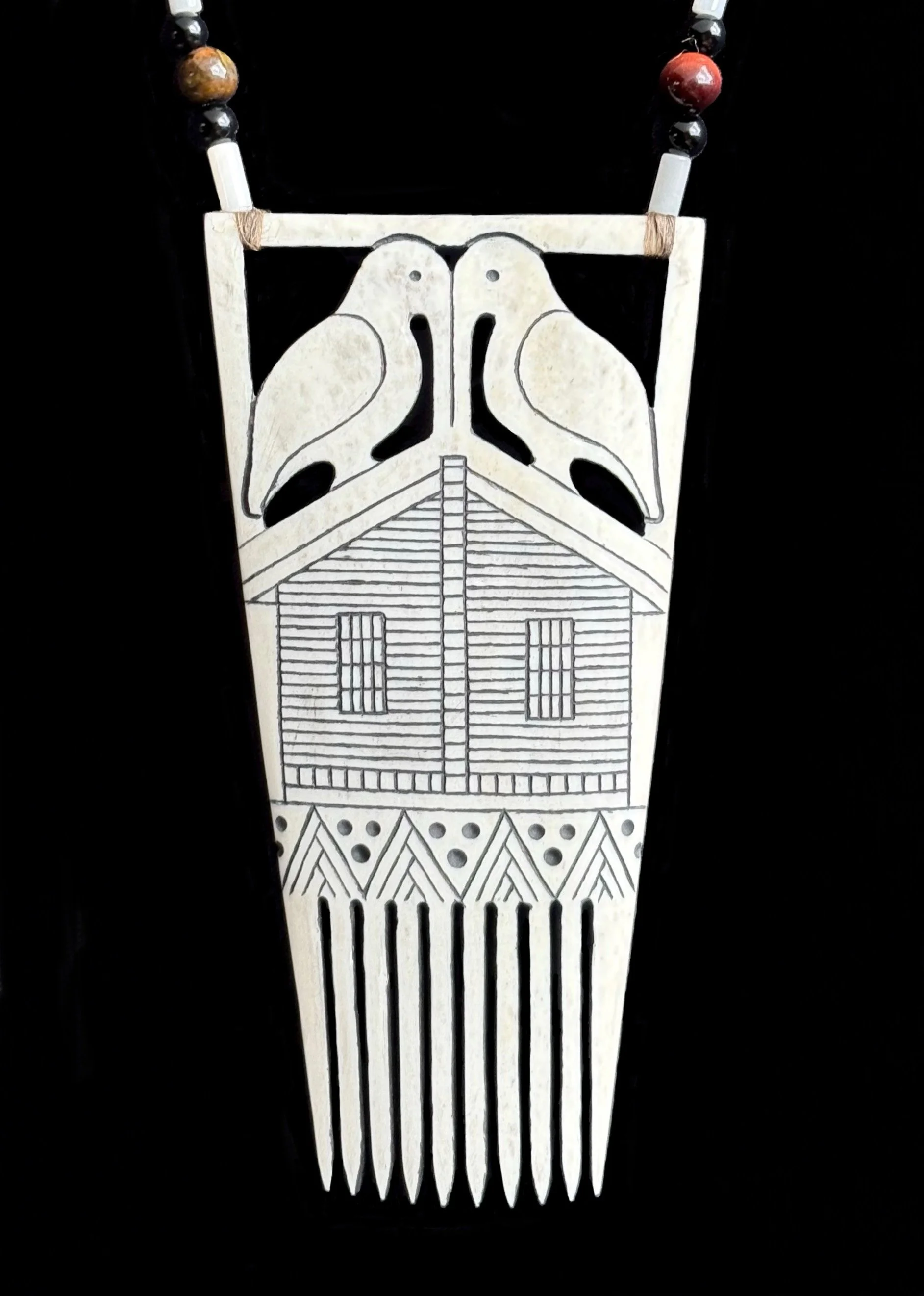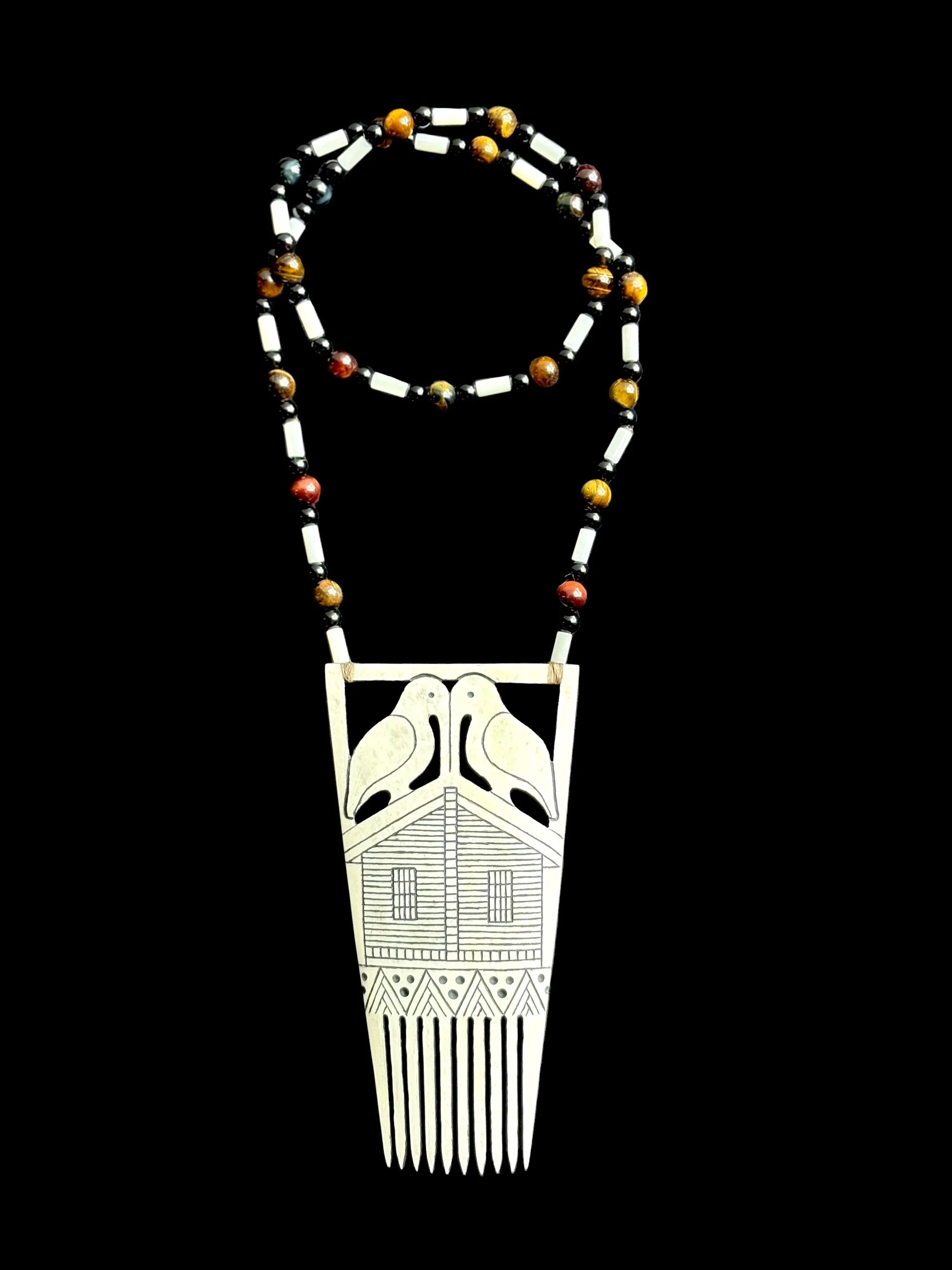 At the heart of this work are necklaces created for each of the eight Seneca clans. Inspired by ancestral designs yet expressed in a contemporary style, these necklaces were made with deep intentionality. Each one carries the memory of the past while speaking to the present role of the Name-Givers who wear them.