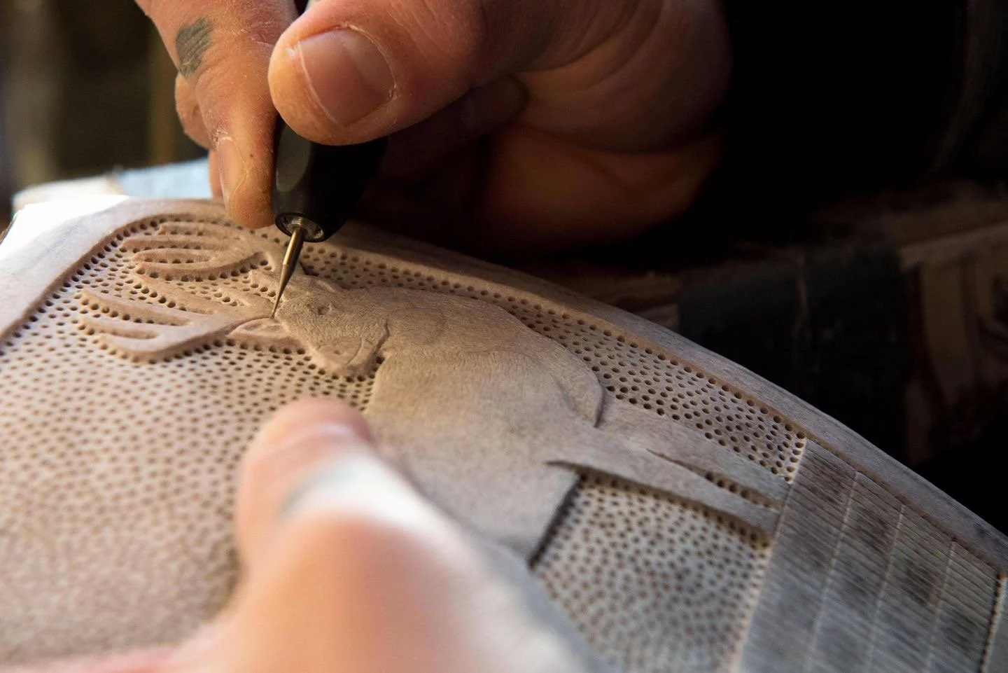 Hayden Haynes is an antler carving artist working deeply in cultural arts revitalization and teaching. A member of the Seneca Nation and Deer Clan, Hayden is a self-taught artist. His art practice involves working across the mediums of antler, found objects, mixed media, and digital photography. Hayden’s work is always created through a self-perspective framed Native lens sharing his experiences, knowledge, and observations of living among his community.