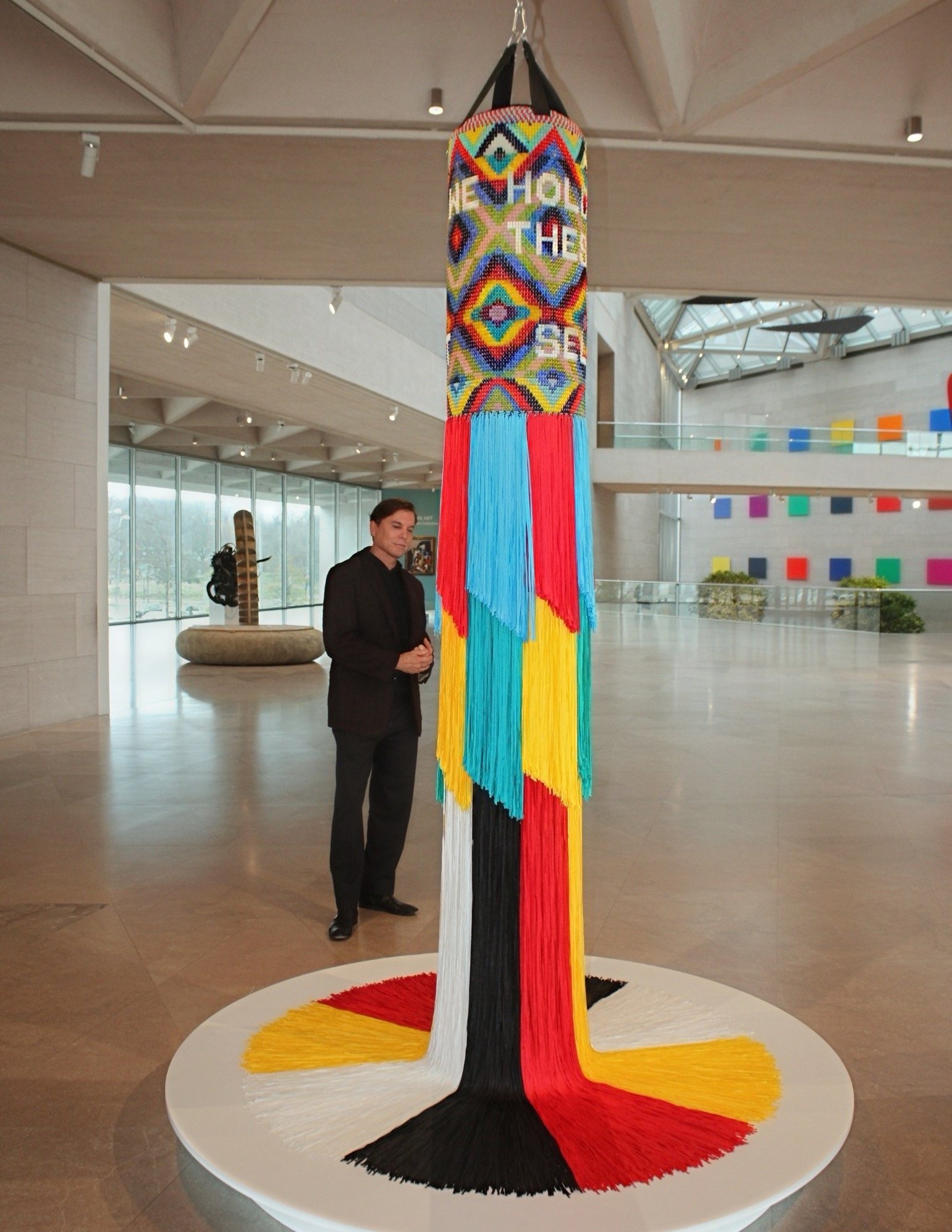 In 2024, Jeffrey Gibson became the first Indigenous artist to represent the United States with a solo presentation at the Venice Biennale—ninety-two years after the pavilion was established. By late 2025, he had opened at Hauser & Wirth Paris, mounted a commission on the façade of the Metropolitan Museum of Art, and debuted his first European museum exhibition at Kunsthaus Zürich. Tate acquired two of his works through its North American Acquisitions Committee—part of a broader pattern that has brought work by Sky Hopinka, Tanya Lukin Linklater, Shuvinai Ashoona, and James Luna into the collection.
