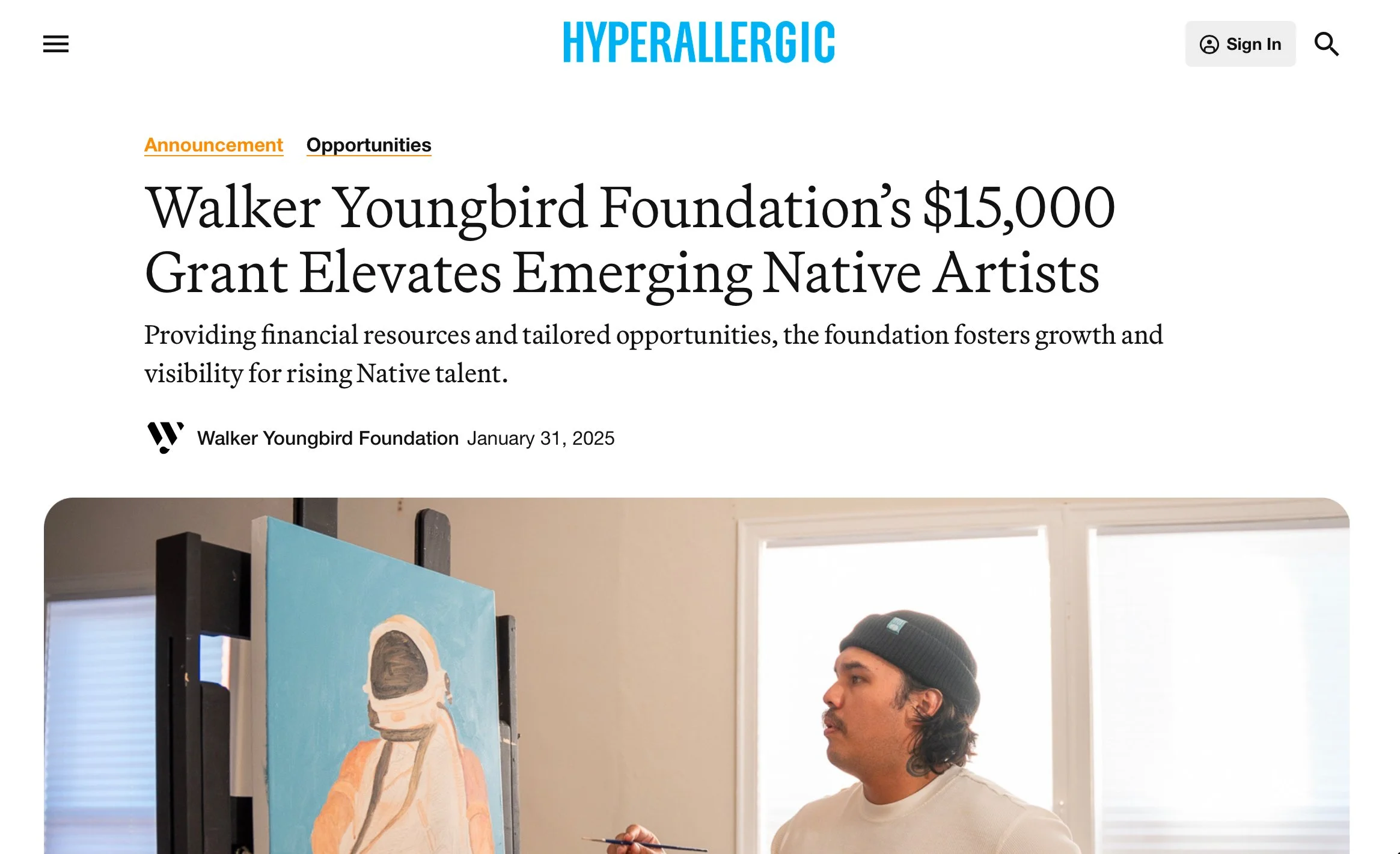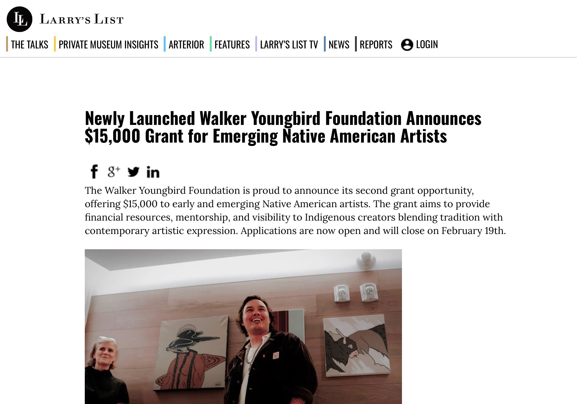 Newly Launched Walker Youngbird Foundation Announces $15,000 Grant for Emerging Native American Artists