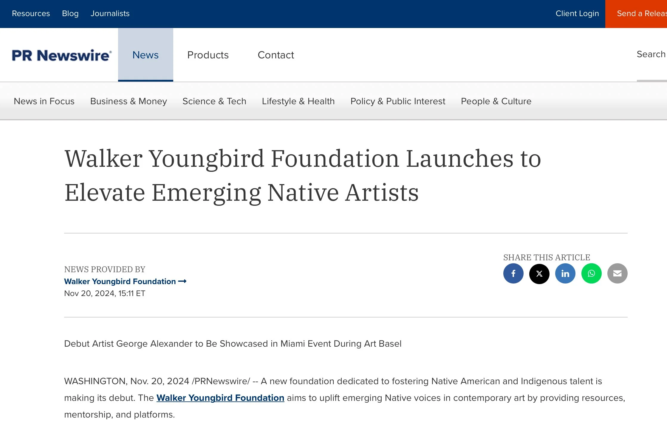 Walker Youngbird Foundation Launches to Elevate Emerging Native Artists